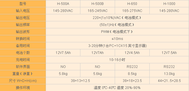 技術(shù)參數(shù) (UPS-H不間斷電源)